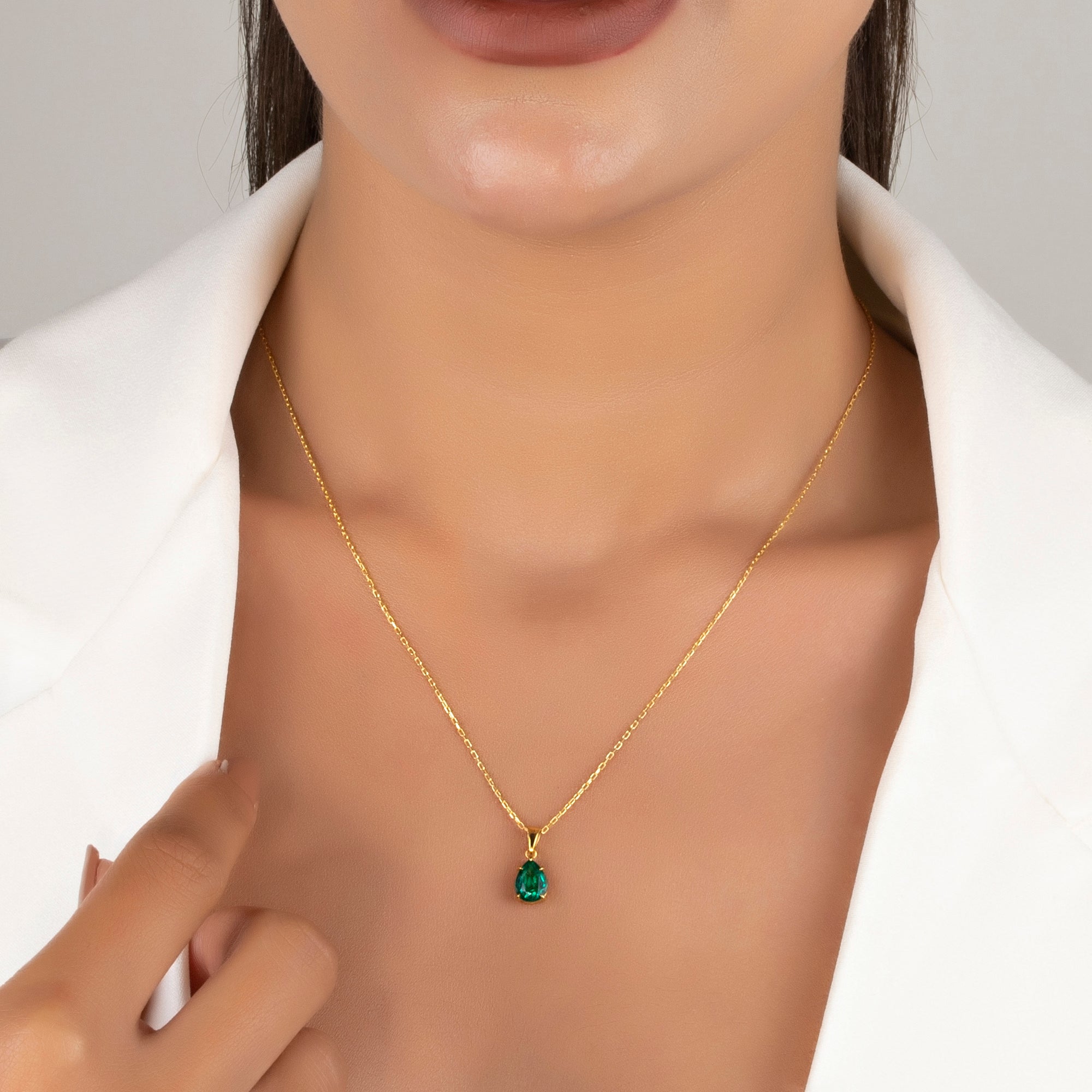 Pear-Shaped Claw Prong Emerald Necklace - May Birthstone Jewelry