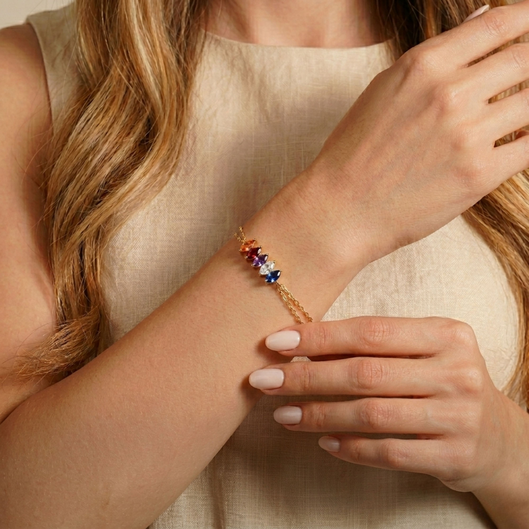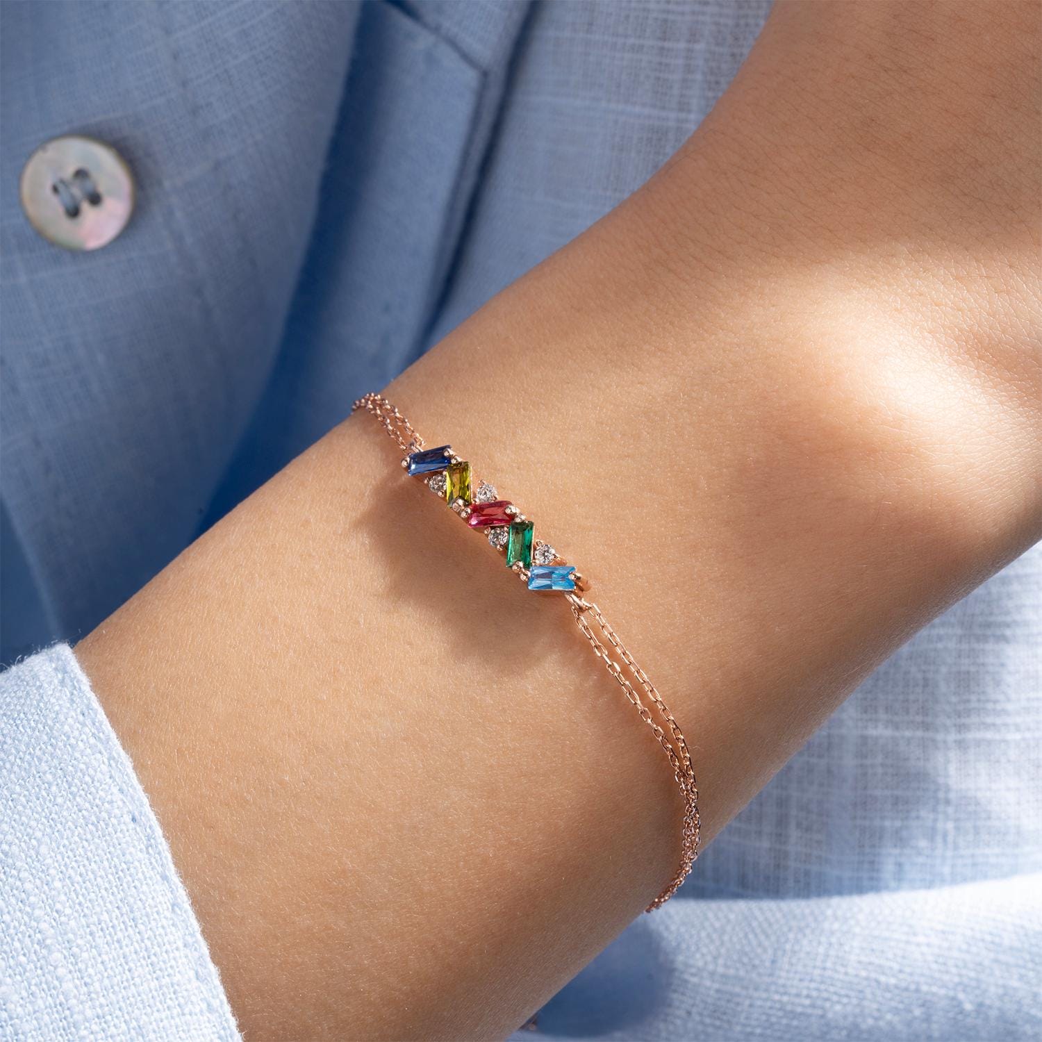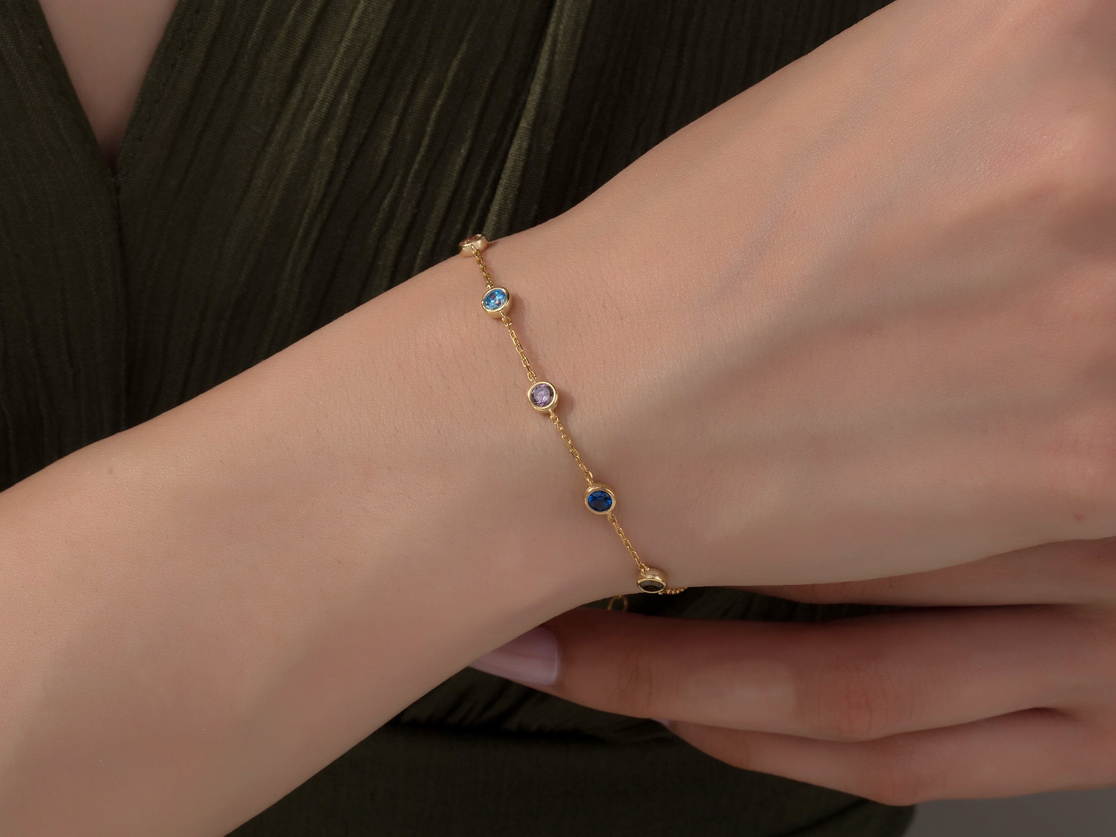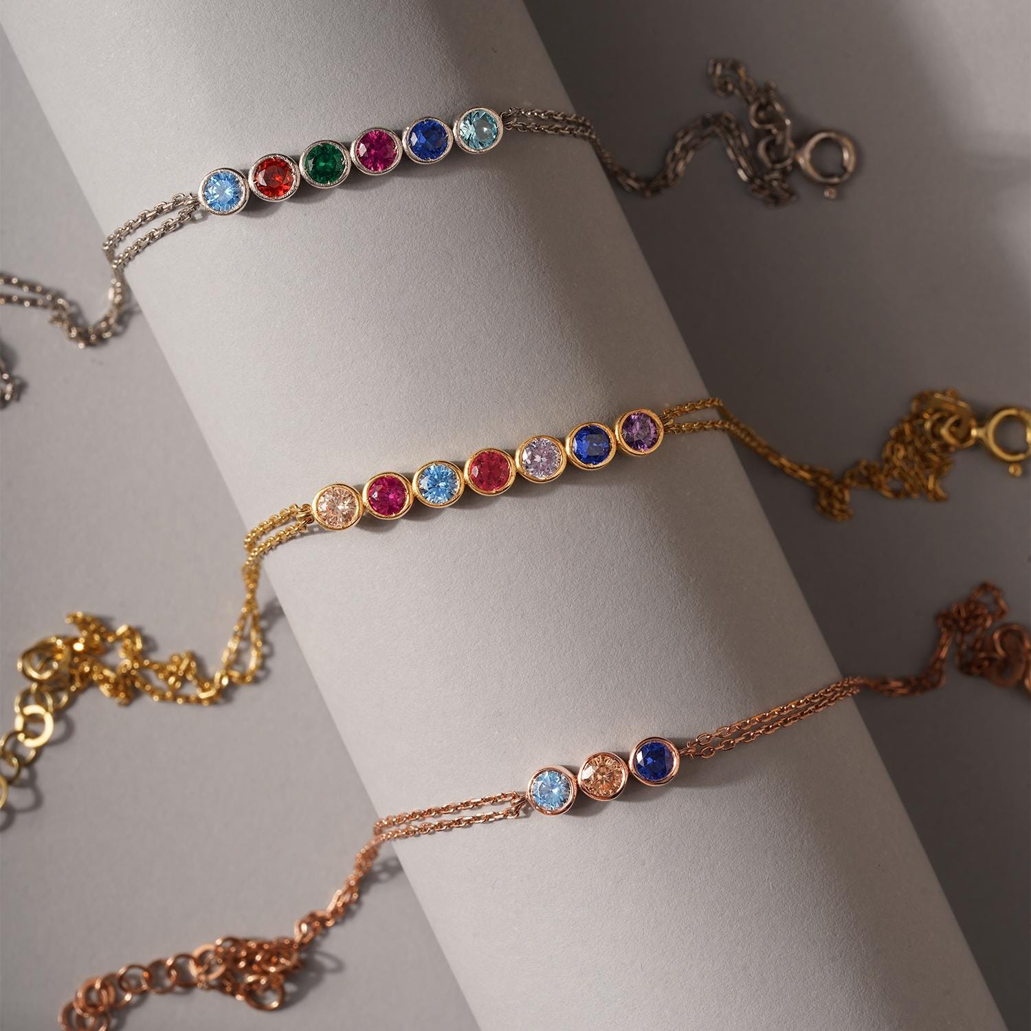 Custom Spaced Multi Birthstone Bracelet