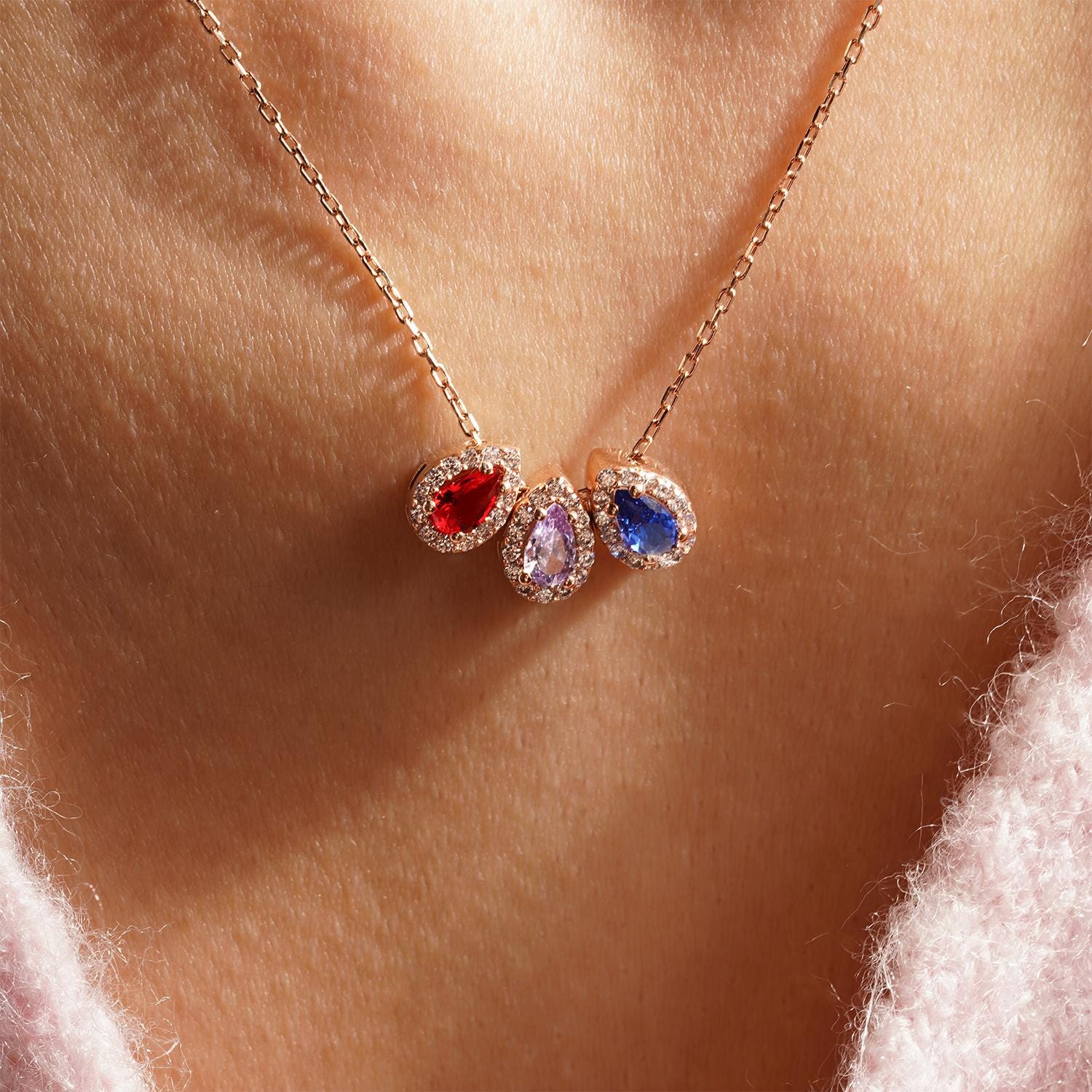 Custom Teardrop Birthstone Necklace
