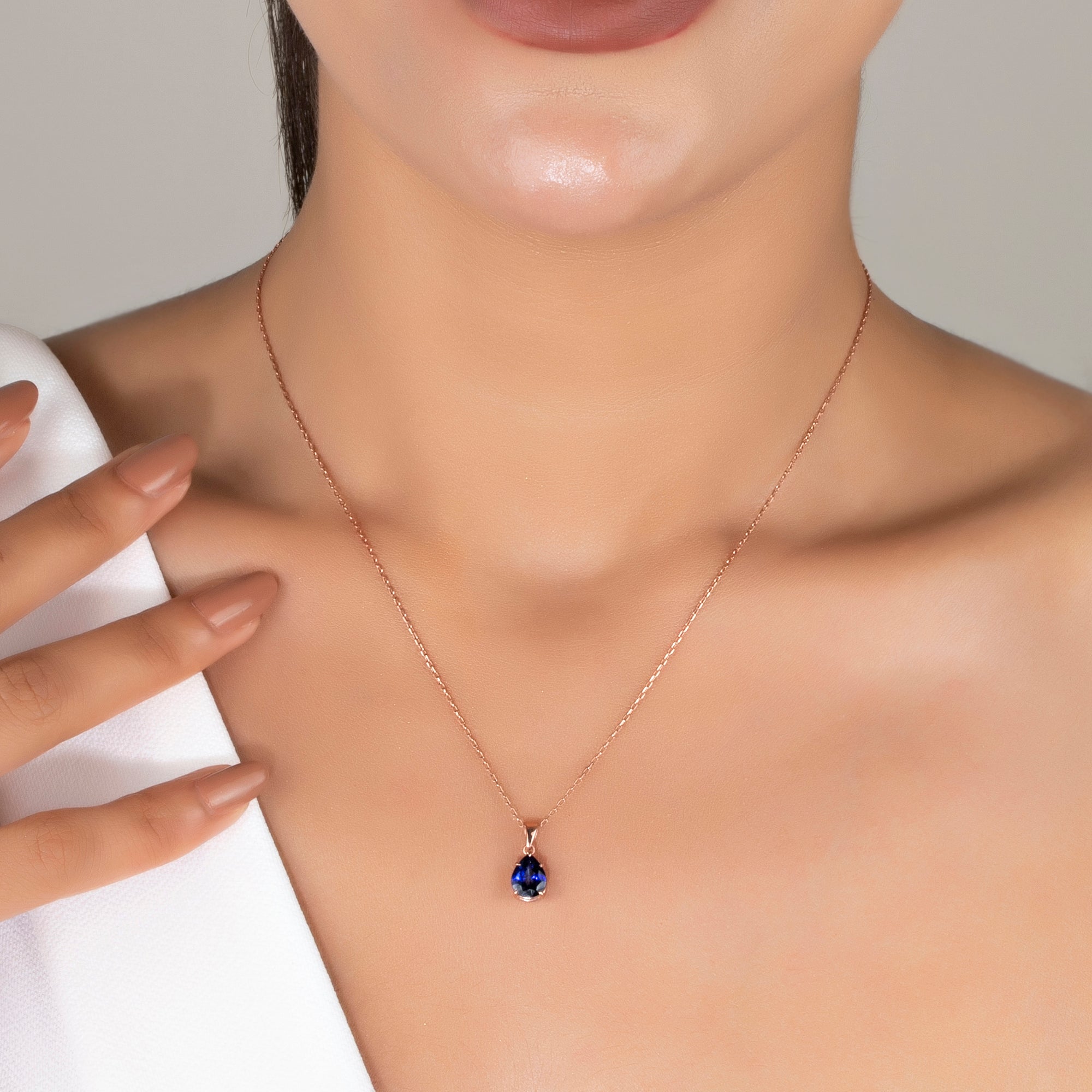 Pear Cut Sapphire Claw Prong Necklace - September Birthstone Jewelry