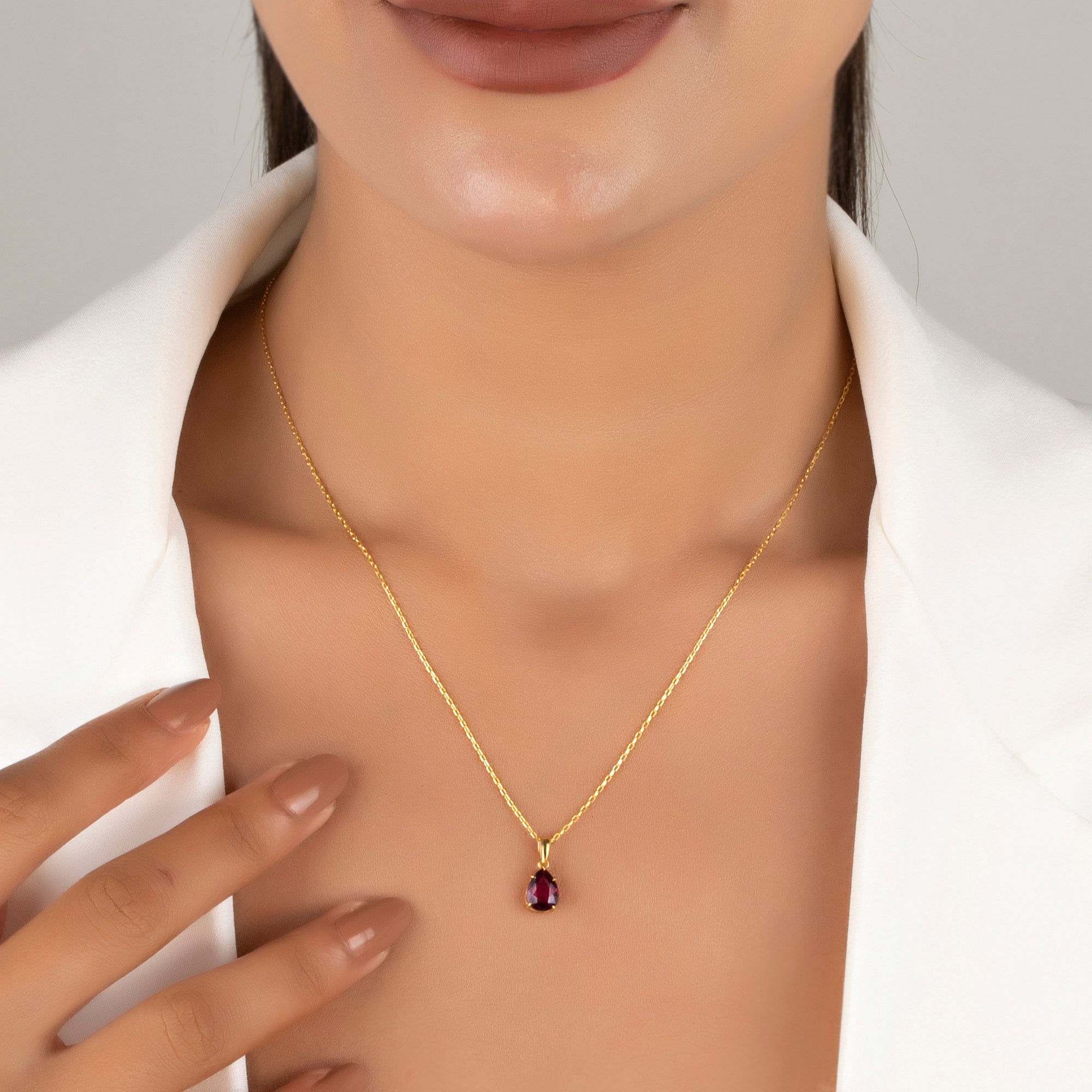 Pear-Shaped Claw Prong Ruby Necklace - July Birthstone Jewelry