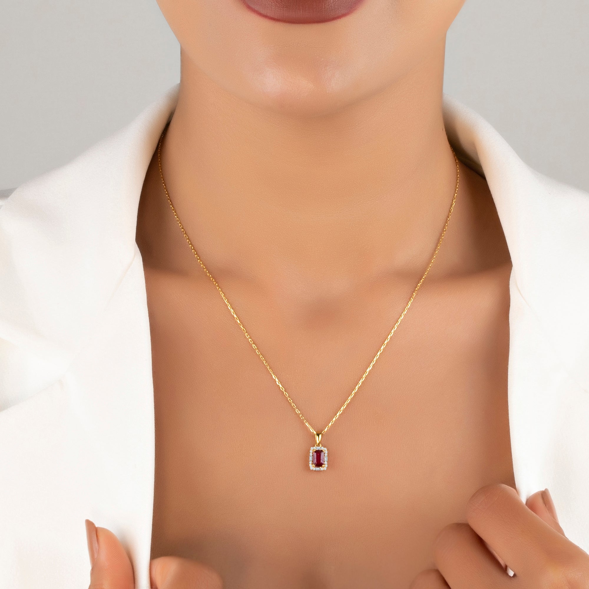 Ruby Pendant Necklace with CZ Diamond Accents- July Birthstone Jewelry