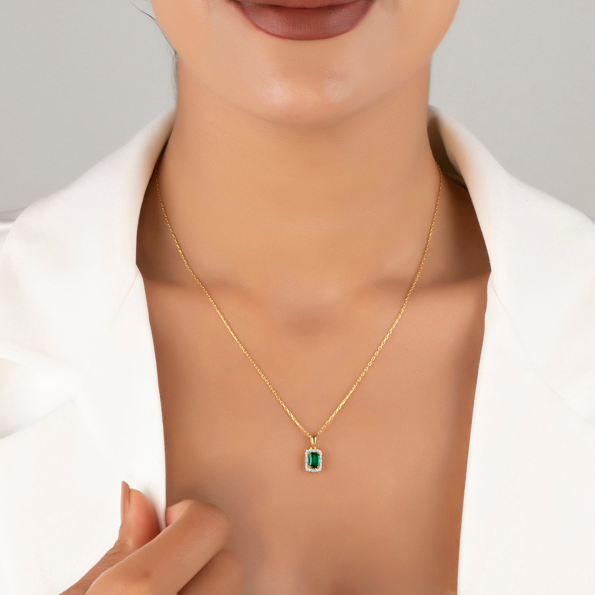 Emerald Pendant Necklace with CZ Diamond Accents- May Birthstone Jewelry